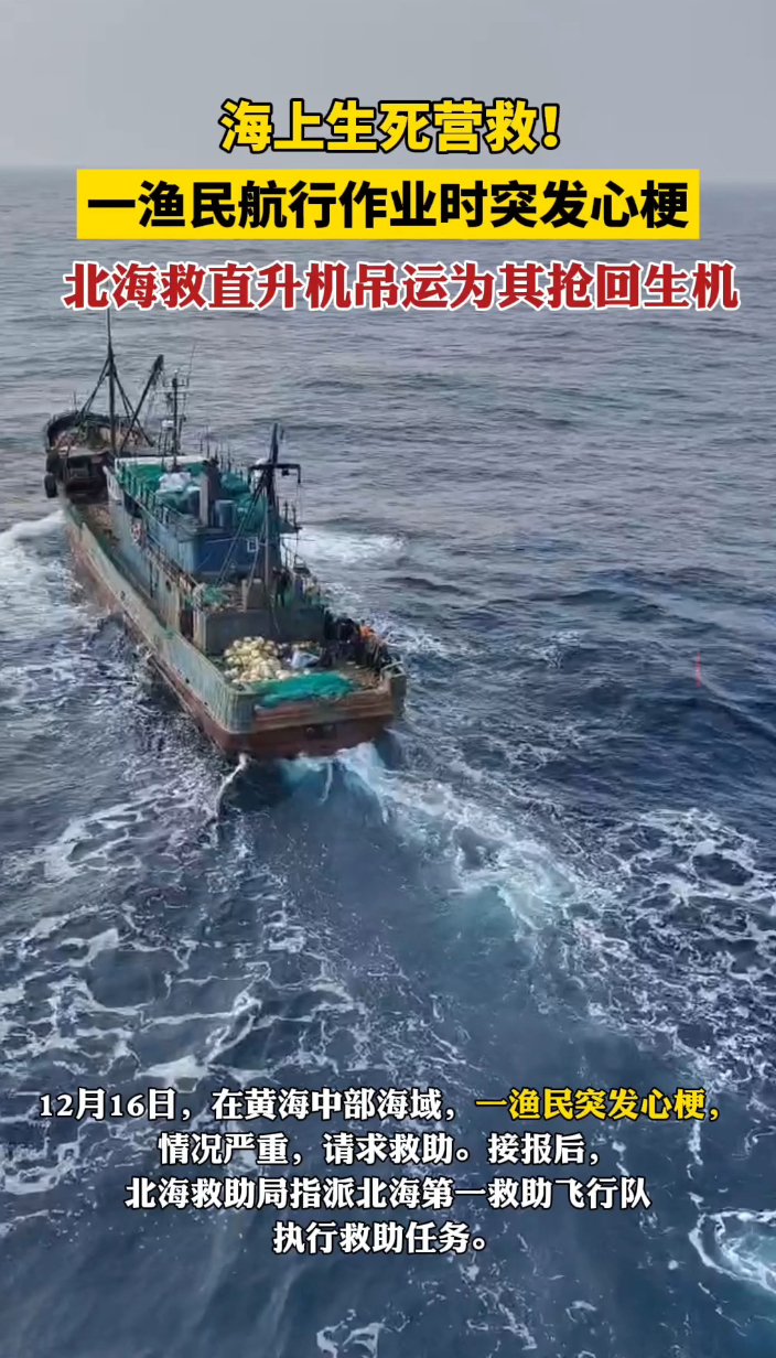 果然视频 | 海上生死营救!北海救直升机吊运心梗渔民抢回生机