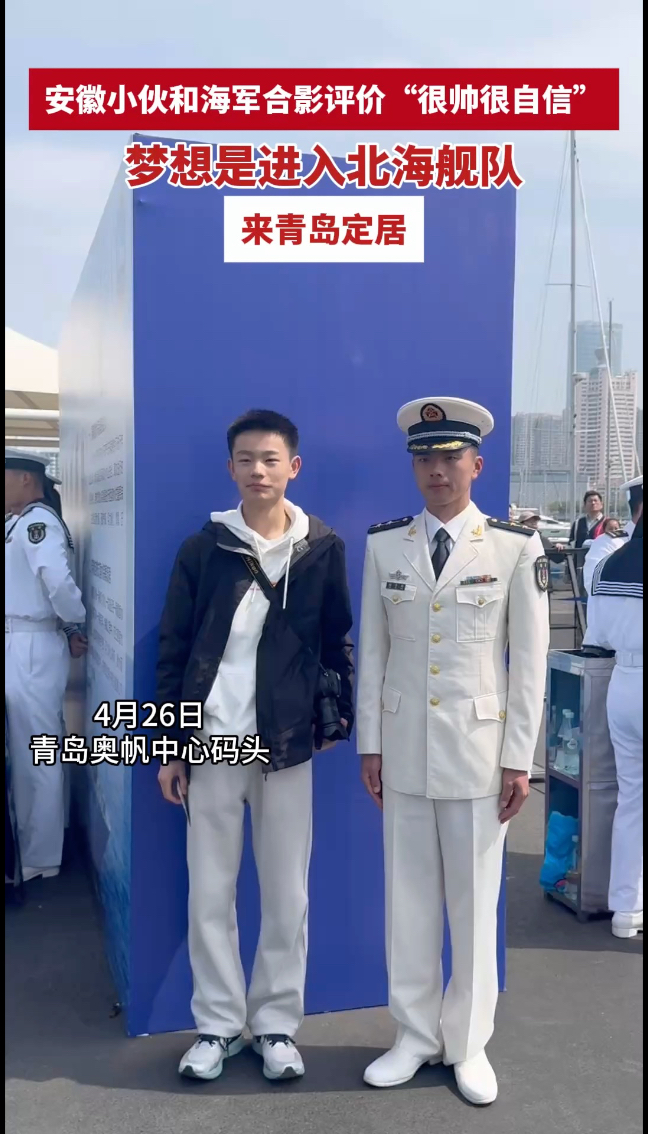 安徽小伙和海军合影评价“很帅很自信”,梦想是进入北海舰队,来青岛定居