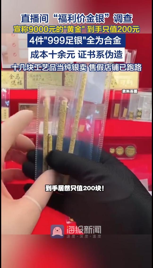 主播说丨直播间“福利价金银”调查,宣称9000元的黄金到手只值200元