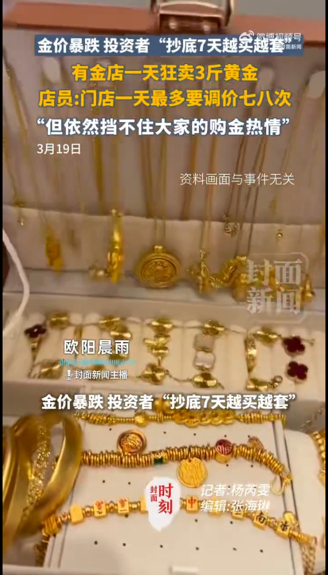 一觉醒来黄金挂坠亏了2000元,金价暴跌抄底7天越买越套