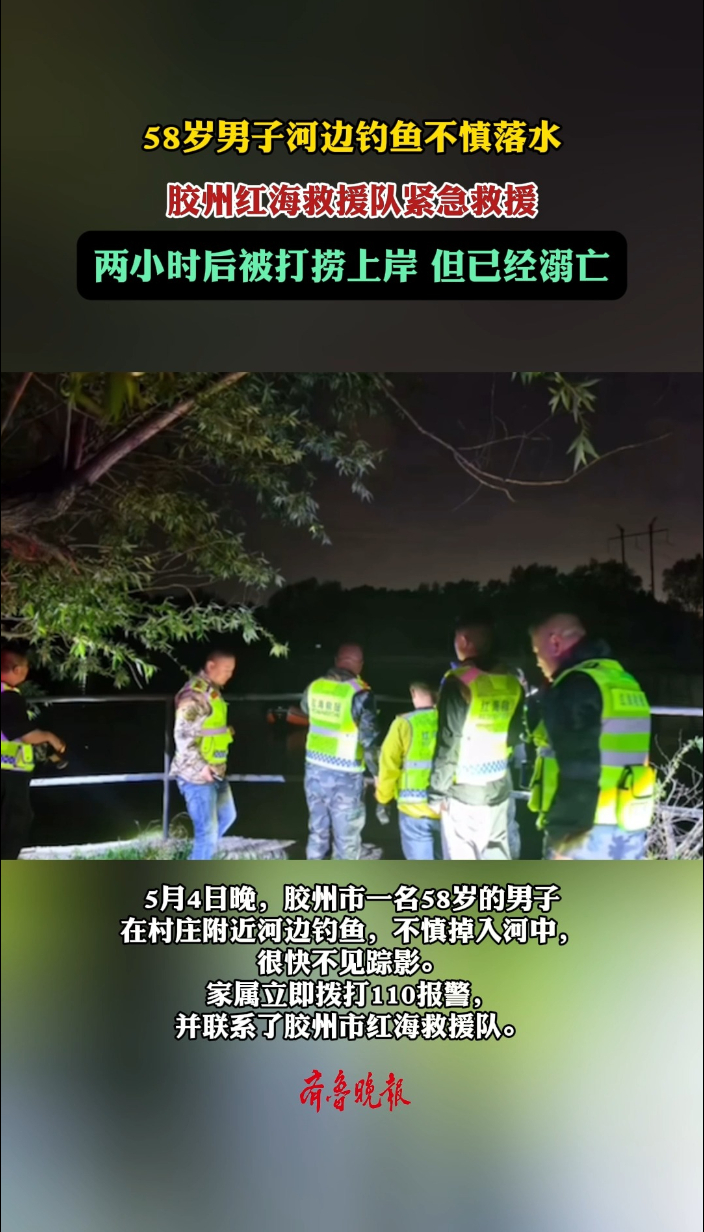 琴视频丨58岁男子夜钓落水,胶州红海救援队紧急救援