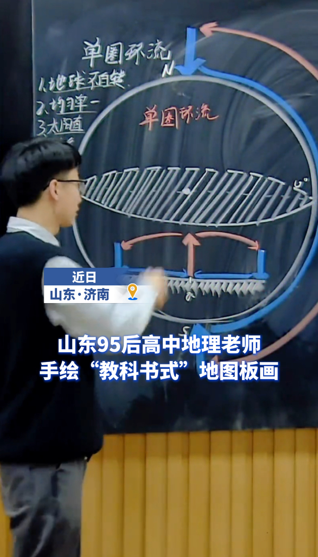 热点 | 山东95后高中地理老师手绘“教科书式”地图板画