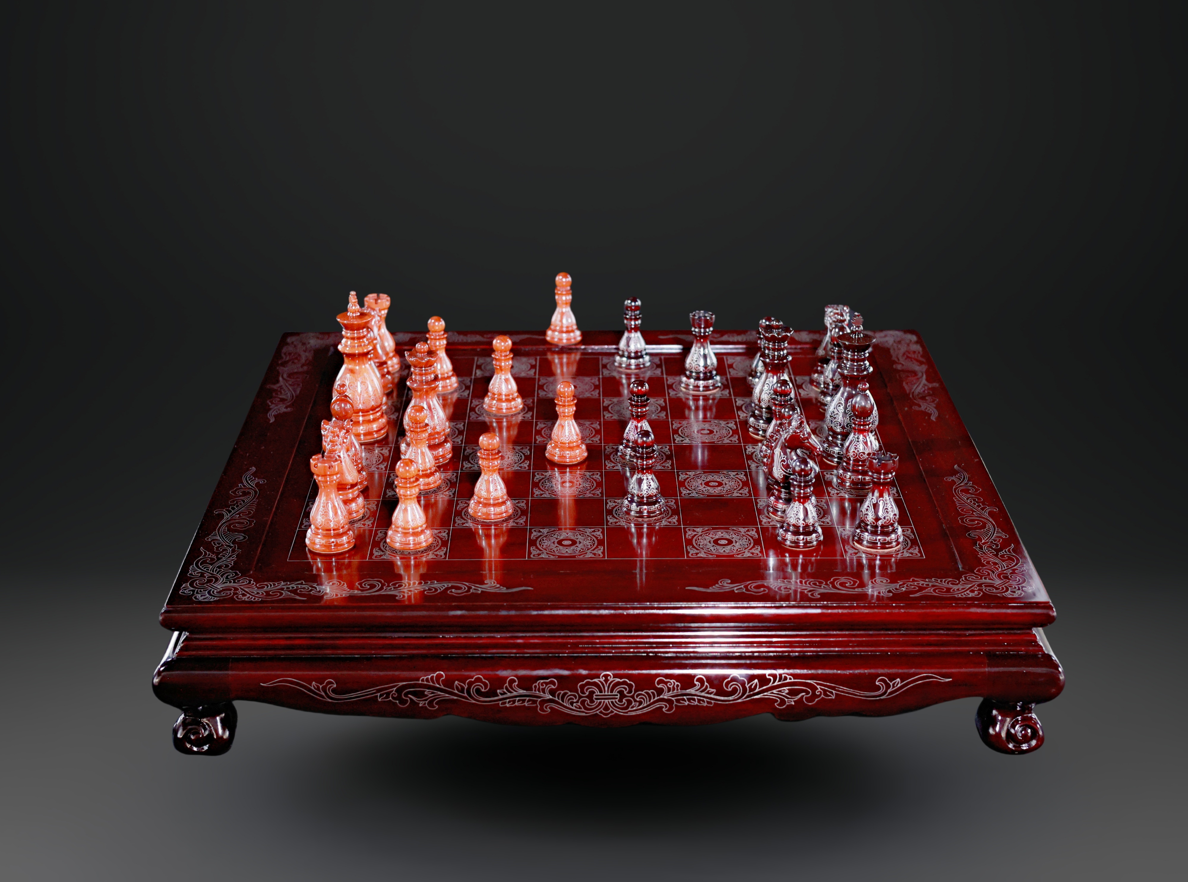 潍坊非遗文创设计红木嵌银国际象棋出圈