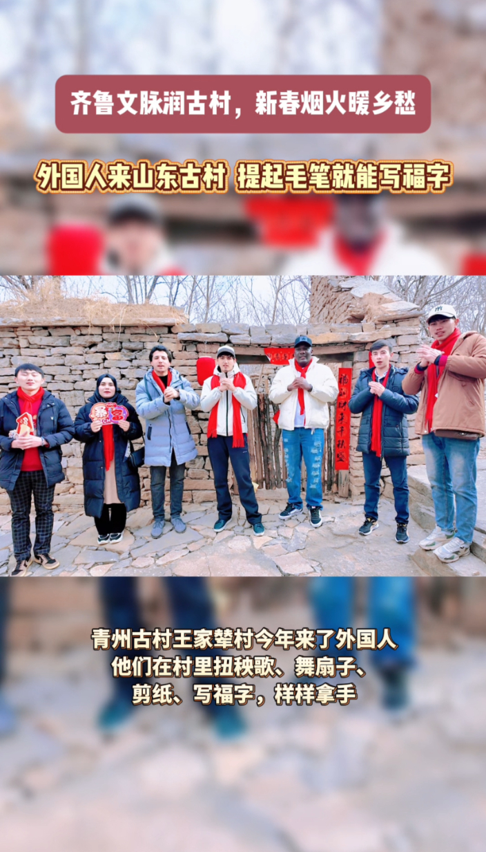 果然视频·新春走基层|山东古村来了外国人,提起毛笔就能写福字