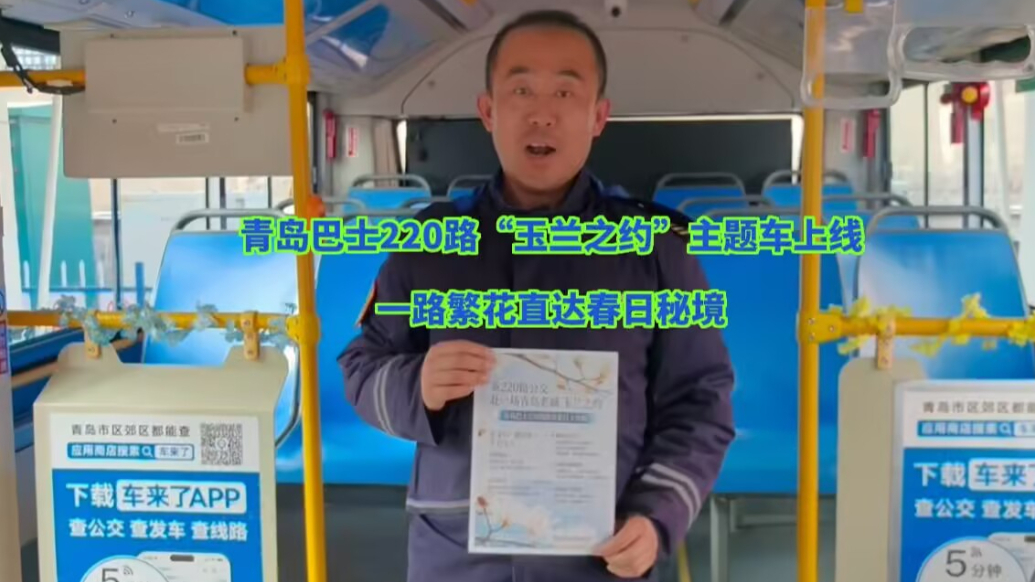 果然视频丨一路繁花!青岛巴士220路“玉兰之约”主题车上线