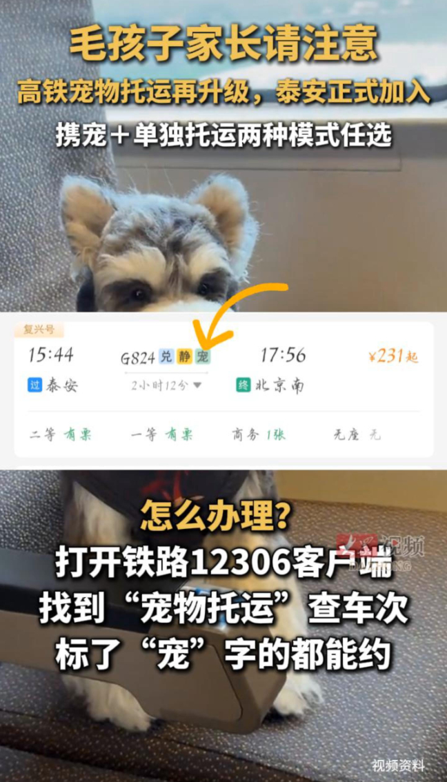 毛孩子家长请注意 高铁宠物托运再升级,泰安正式加入 携宠+单独托运两种模式任选