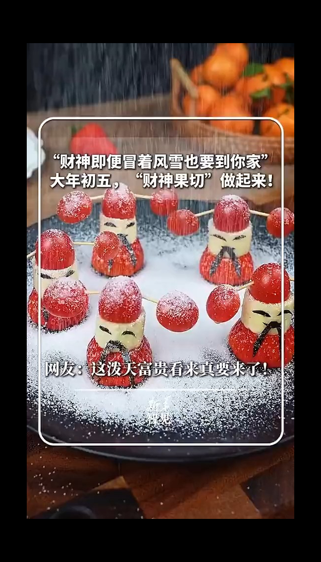 大年初五财神果切来了 “财神即便冒着风雪也要到你家”