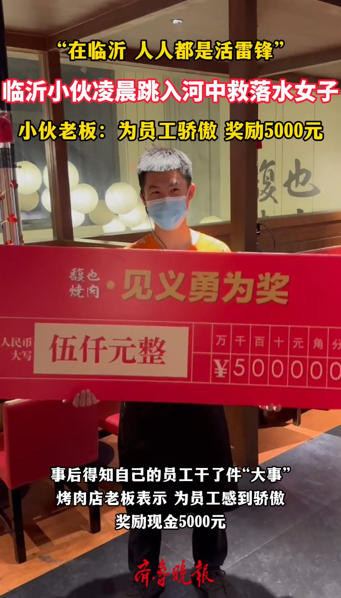 果然视频|临沂小伙跳河救起落水女子,小伙老板奖励5000元