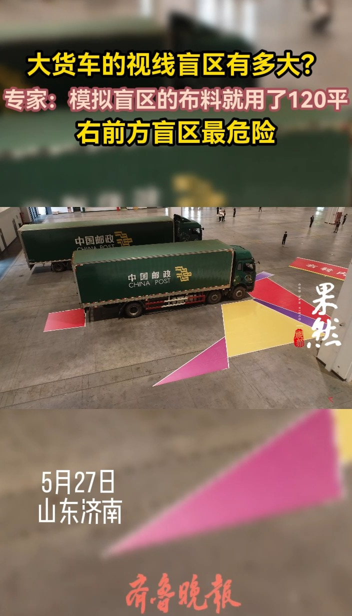 果然视频丨市民沉浸式体验大货车视觉盲区,车外120㎡布料驾驶室内根本看不见