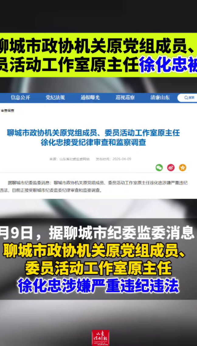 聊城市政协机关原党组成员、委员活动工作室原主任徐化忠被查