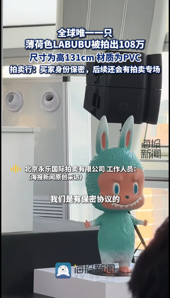 全球唯一一只薄荷色LABUBU被拍出108万,拍卖行:买家身份保密,后续还会有拍卖专场