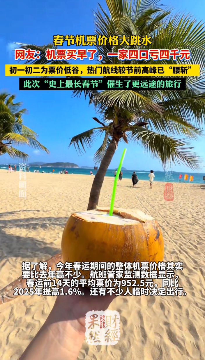 果然财经|春节机票价格腰斩!有网友全家机票买早亏了四千元