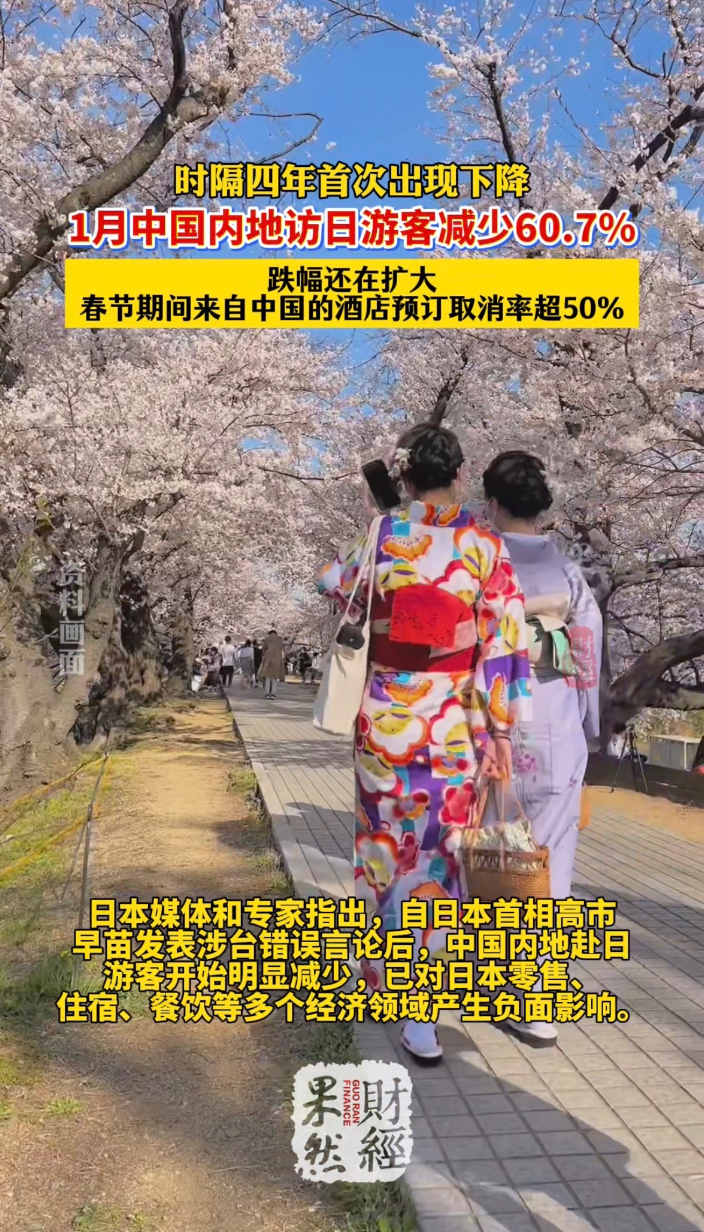 果然财经|四年来首降!1月中国内地访日游客减少超60%