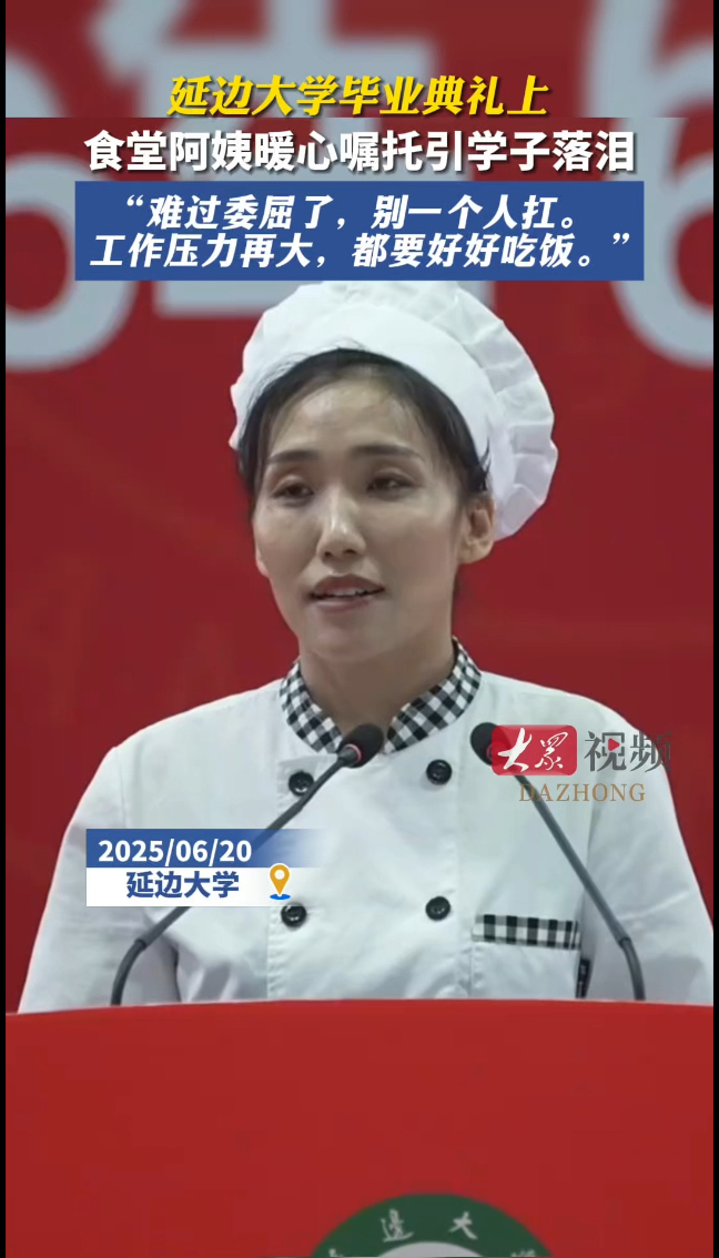 热点|延边大学毕业典礼上食堂阿姨暖心嘱托,句句朴实引学子落泪