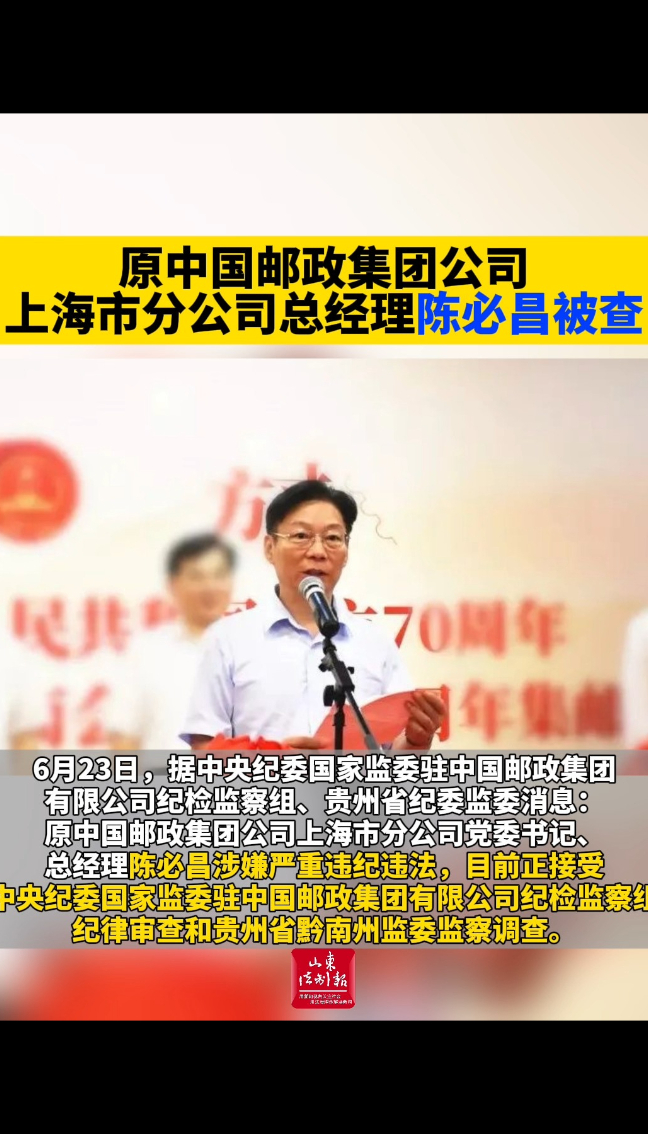 原中国邮政集团公司上海市分公司总经理陈必昌被查