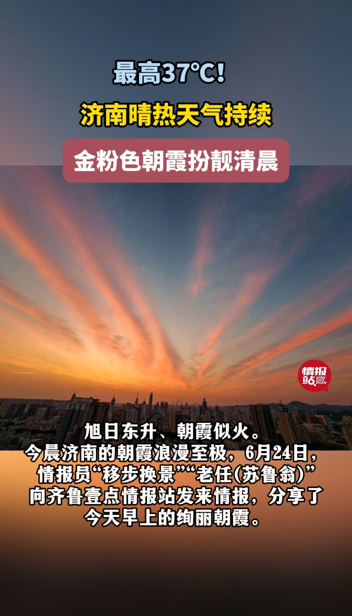 天气情报站|最高37℃!济南晴热天气持续,金粉色朝霞扮靓清晨