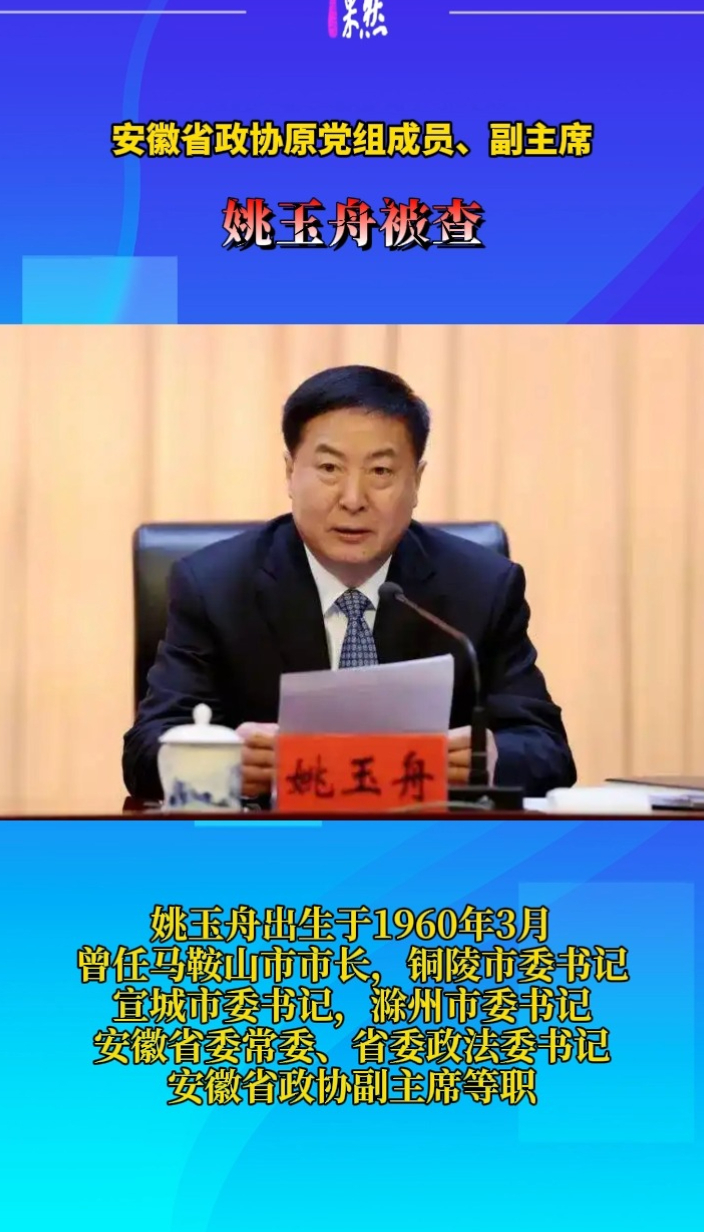 观政视频|安徽省政协原党组成员、副主席姚玉舟被查