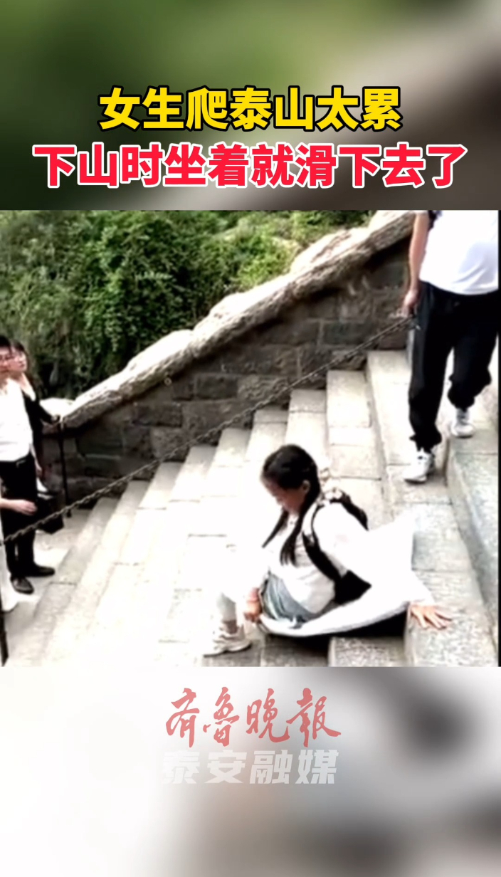 果然视频|女生爬泰山太累,下山时坐着就滑下去了