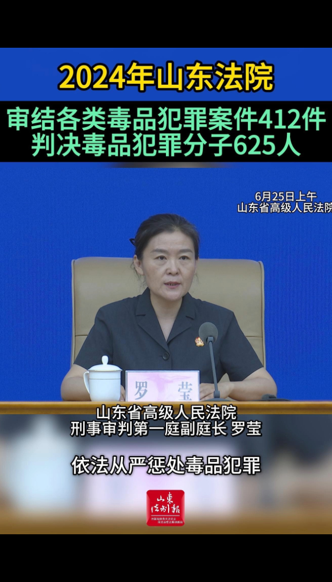 2024年山东法院审结各类毒品犯罪案件412件,判决毒品犯罪分子625人