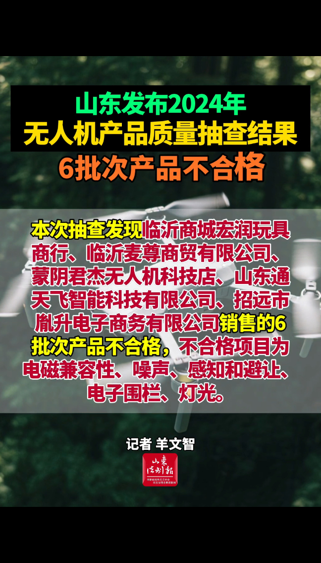 山东发布2024年无人机产品质量抽查结果,6批次产品不合格