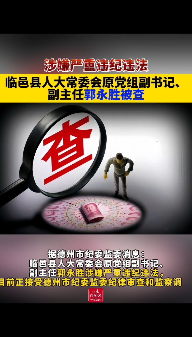 临邑县人大常委会原党组副书记、副主任郭永胜被查