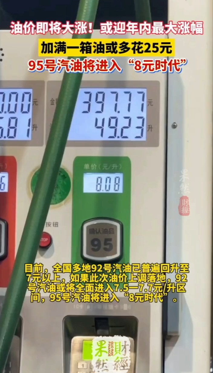 果然财经|油价或迎年内最大涨幅,95号汽油将进入“8元时代”