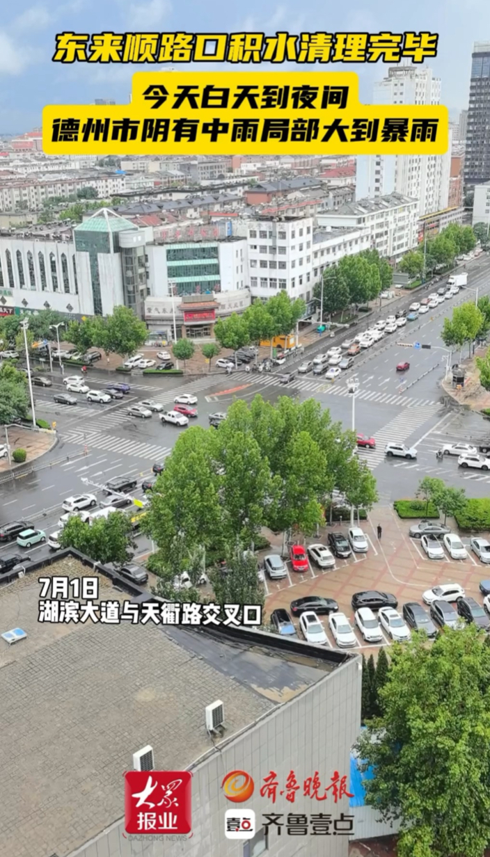 果然视频|德州东来顺路口积水清理完毕!今日局部仍有大到暴雨