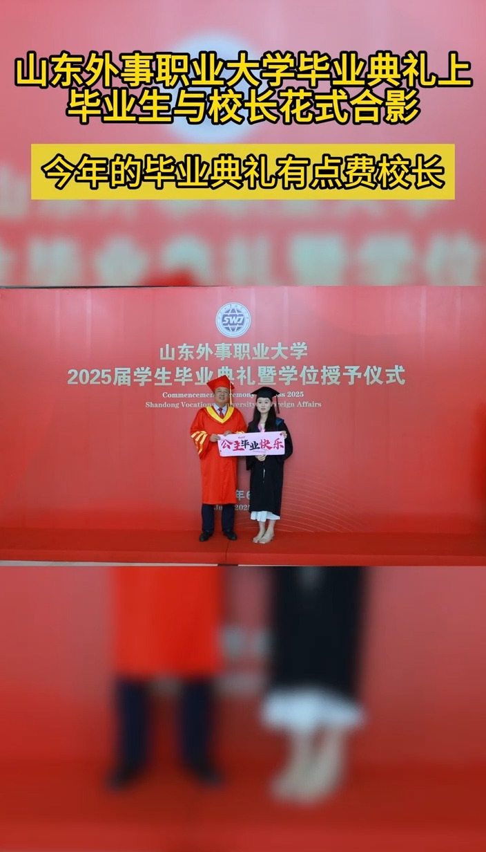 果然视频|山东外事职业大学举行毕业典礼,学生与校长花式合影!