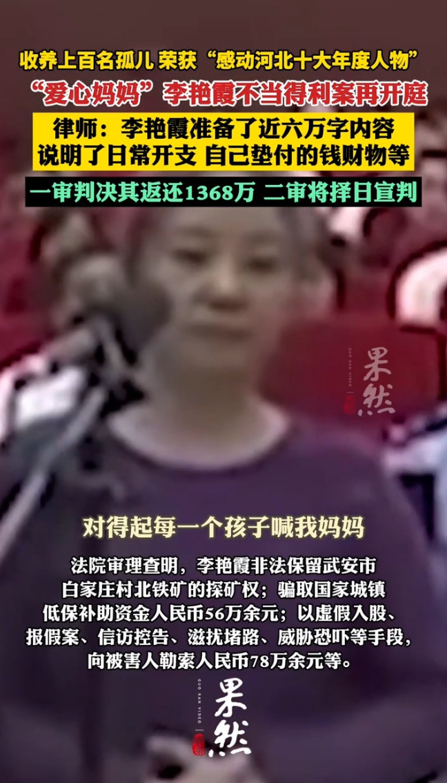 “爱心妈妈”李艳霞不当得利案再开庭,律师:将择日宣判;一审判决其返还1368万余元