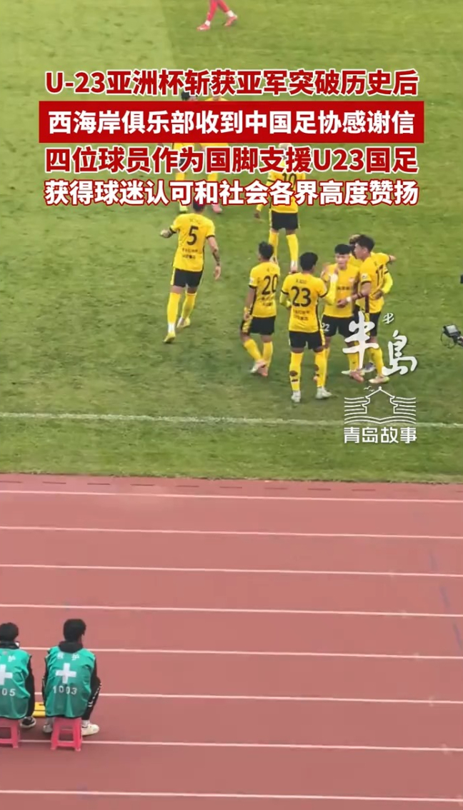 U-23亚洲杯斩获亚军突破历史后,西海岸俱乐部收到中国足协感谢信