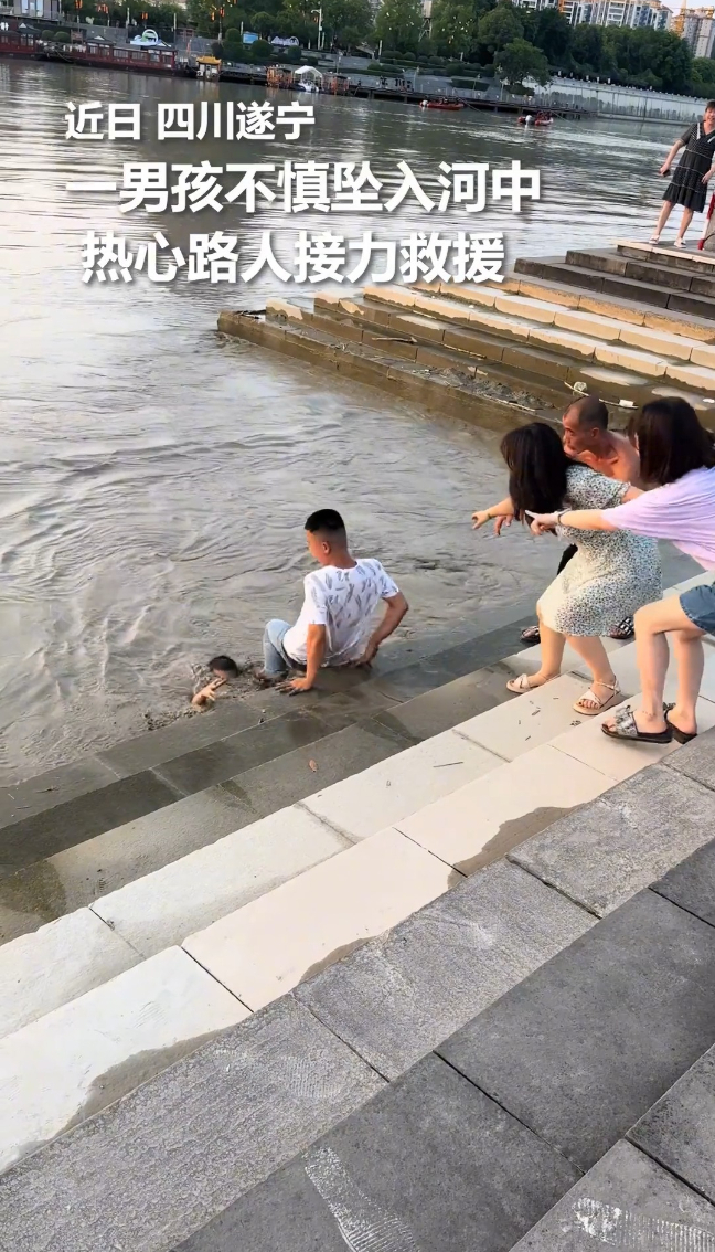 惊险!男子不会游泳仍跳水救人,妻子与路人手拉手接力救起男孩。为勇敢点赞!