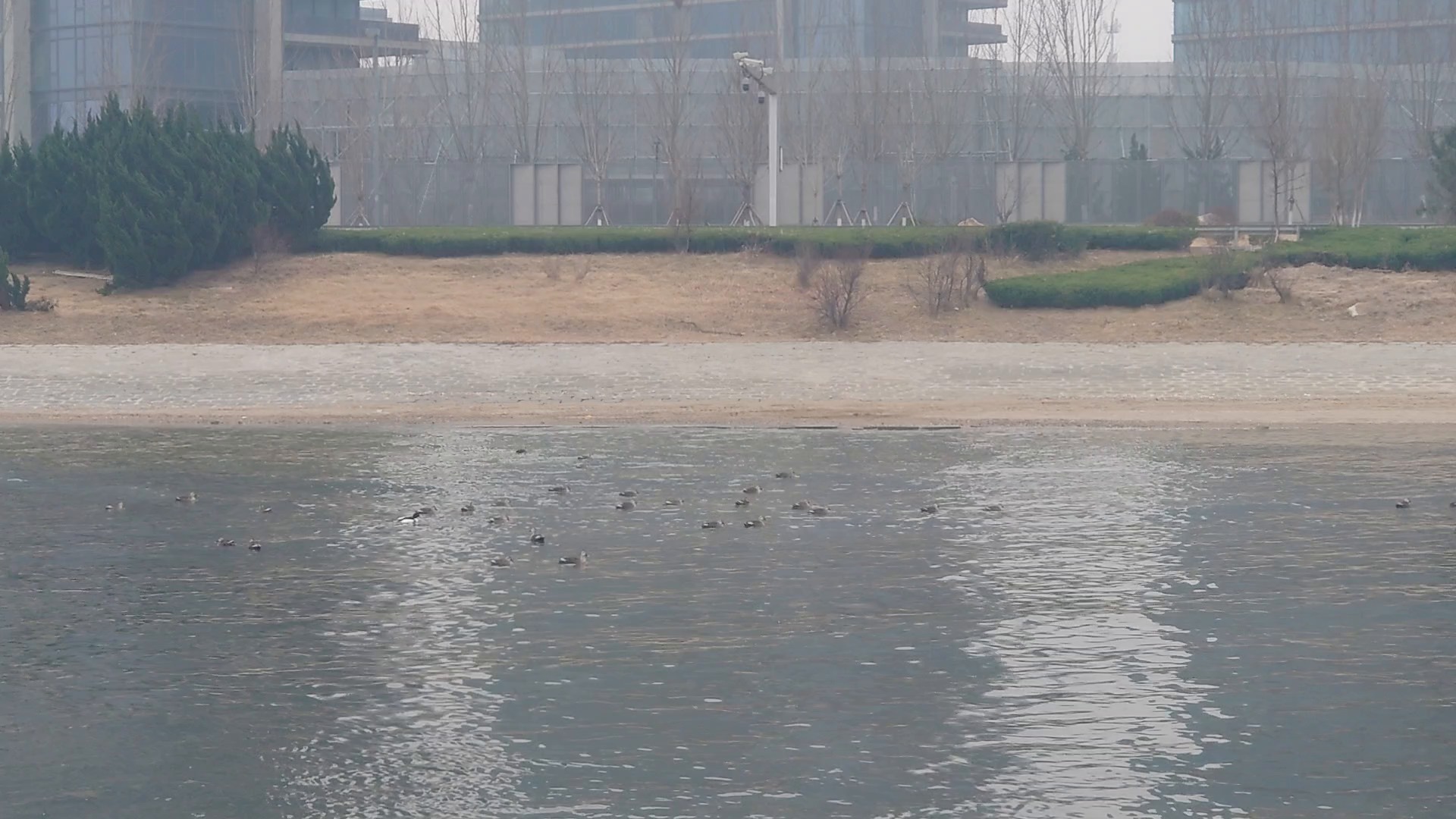 山东省烟台市开发区黄金河两合水黑天鹅与其它鸟类风景