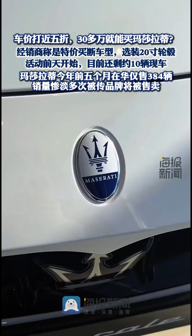 车价打近五折,30多万就能买玛莎拉蒂?经销商称是特价买断车型,活动前天开始,目前还剩约10辆现车