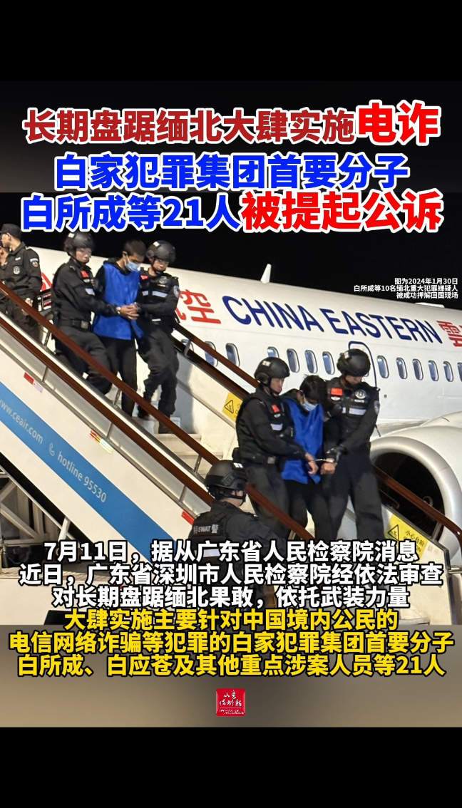长期盘踞缅北大肆实施电诈 白家犯罪集团首要分子白所成等21人被提起公诉