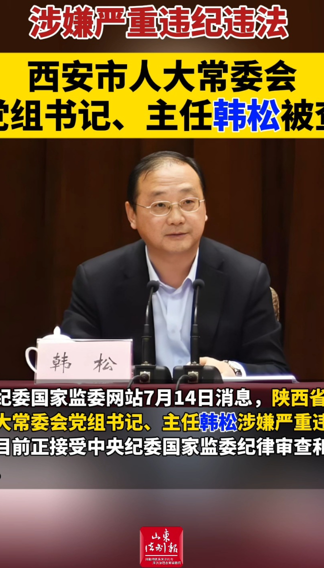 涉嫌严重违纪违法 西安市人大常委会党组书记、主任韩松被查