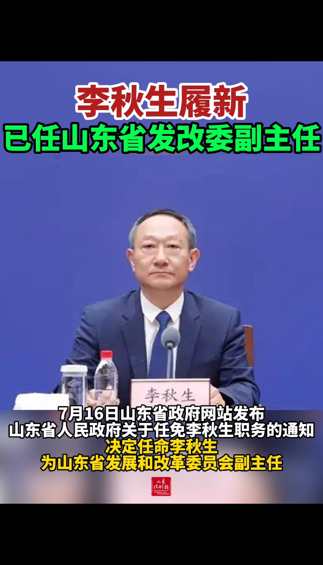 李秋生履新 已任山东省发改委副主任
