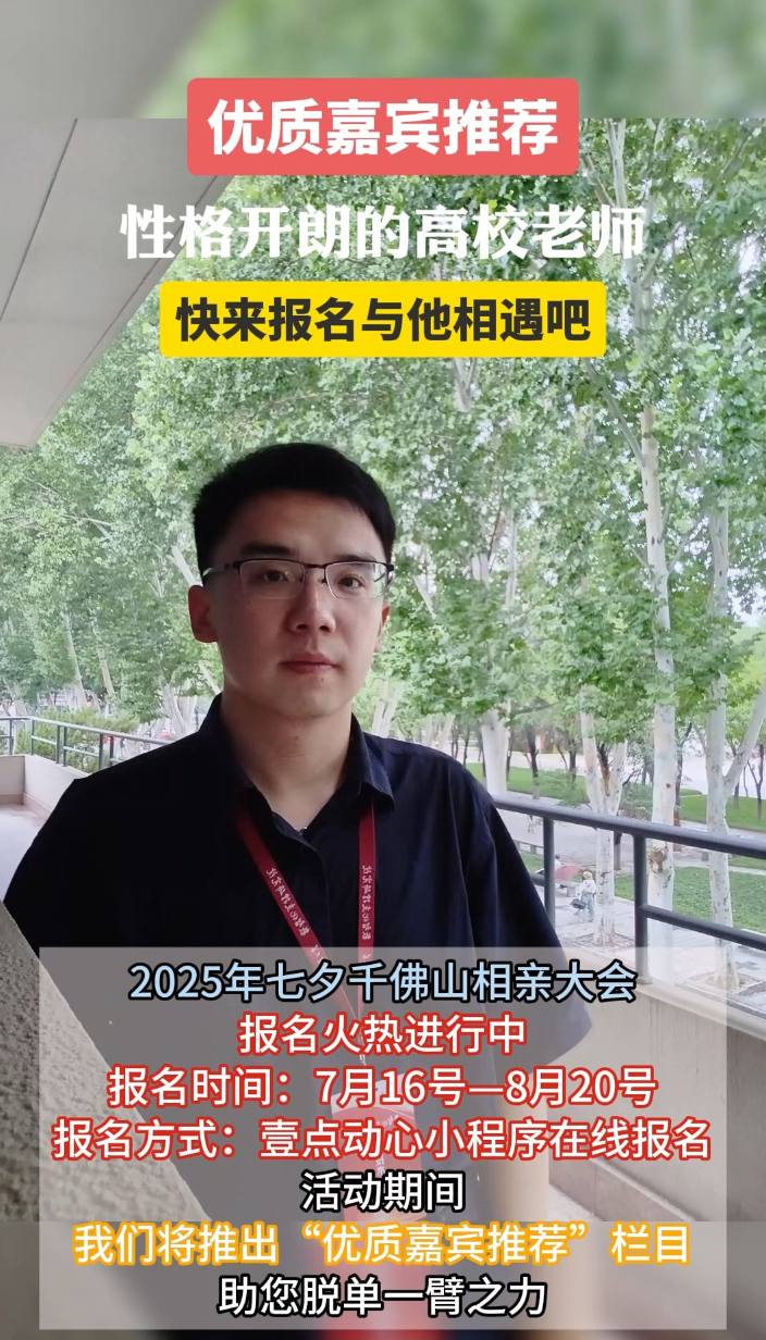 优质嘉宾推荐|性格开朗,真诚帅气!95后大学教师与你相约七夕