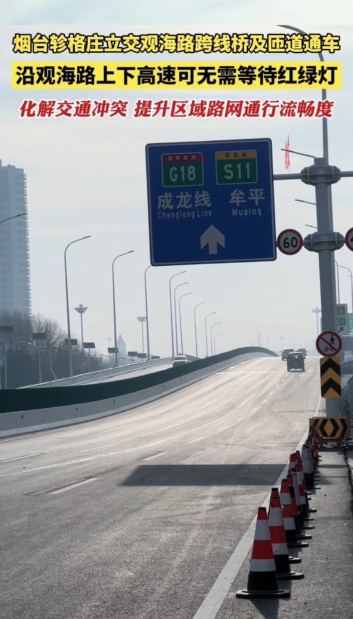 果然视频|烟台轸格庄立交观海路跨线桥及匝道通车