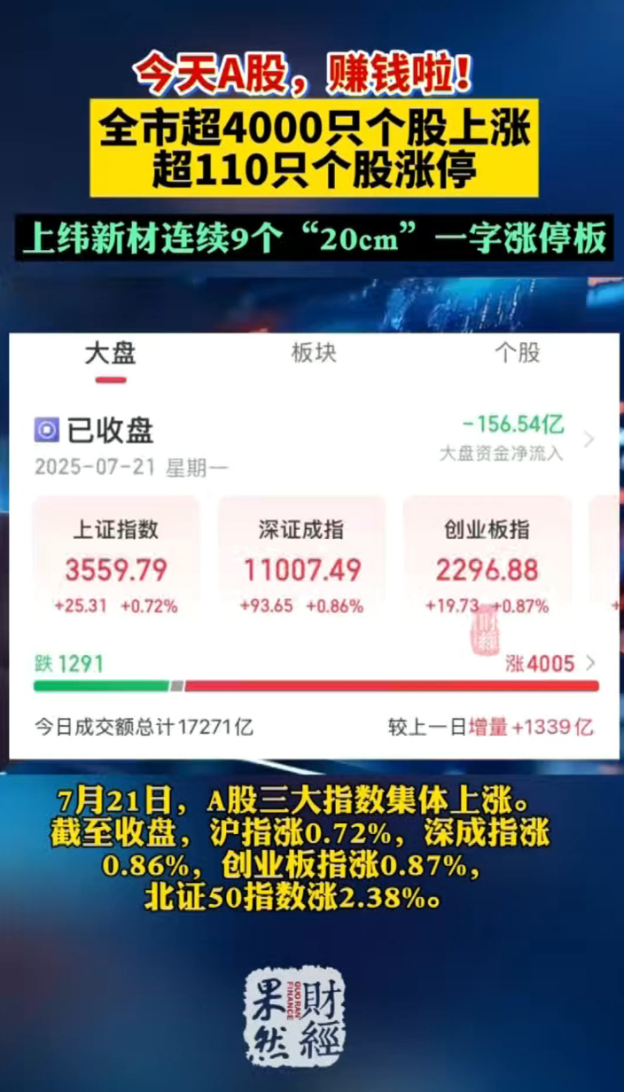 果然财经|今天A股赚了!上纬新材20cm涨停“涨不停”