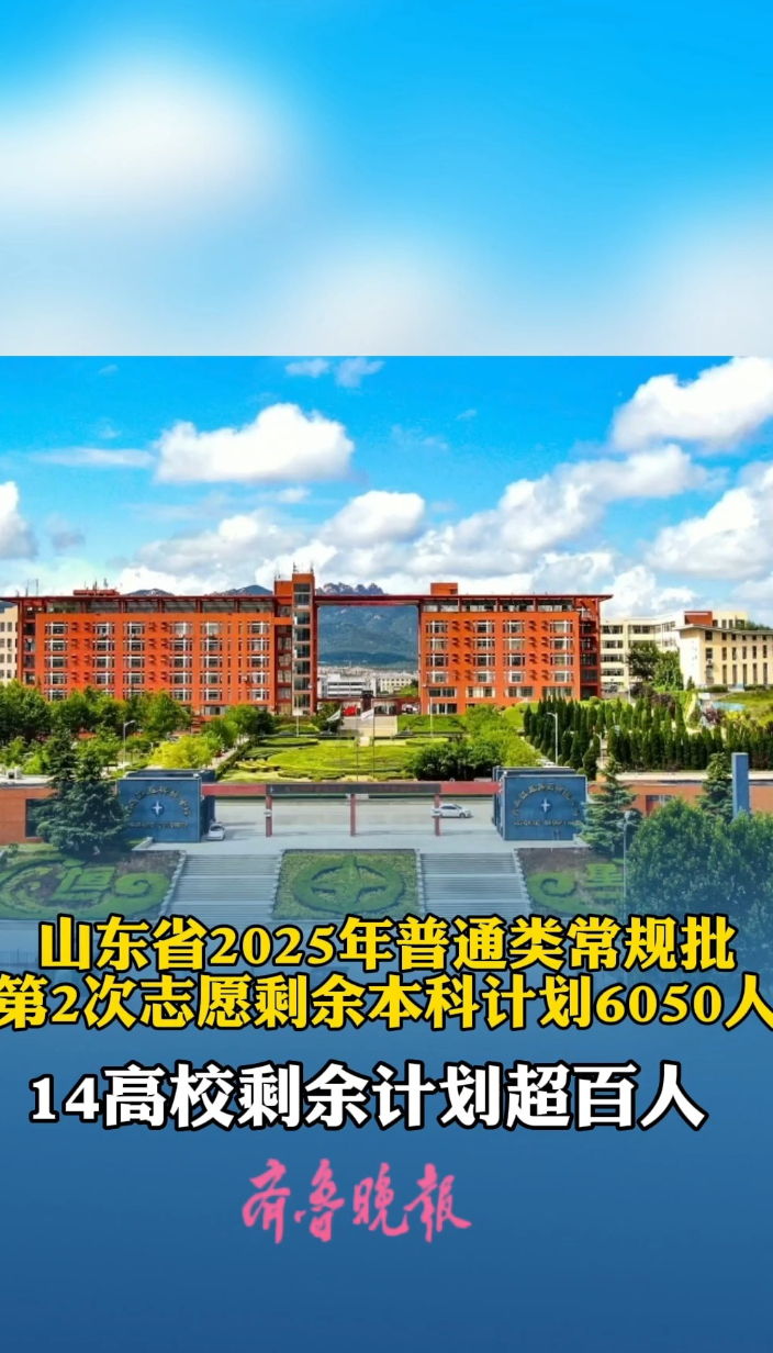 山东省2025普通类常规批第2次志愿剩余本科计划6050人