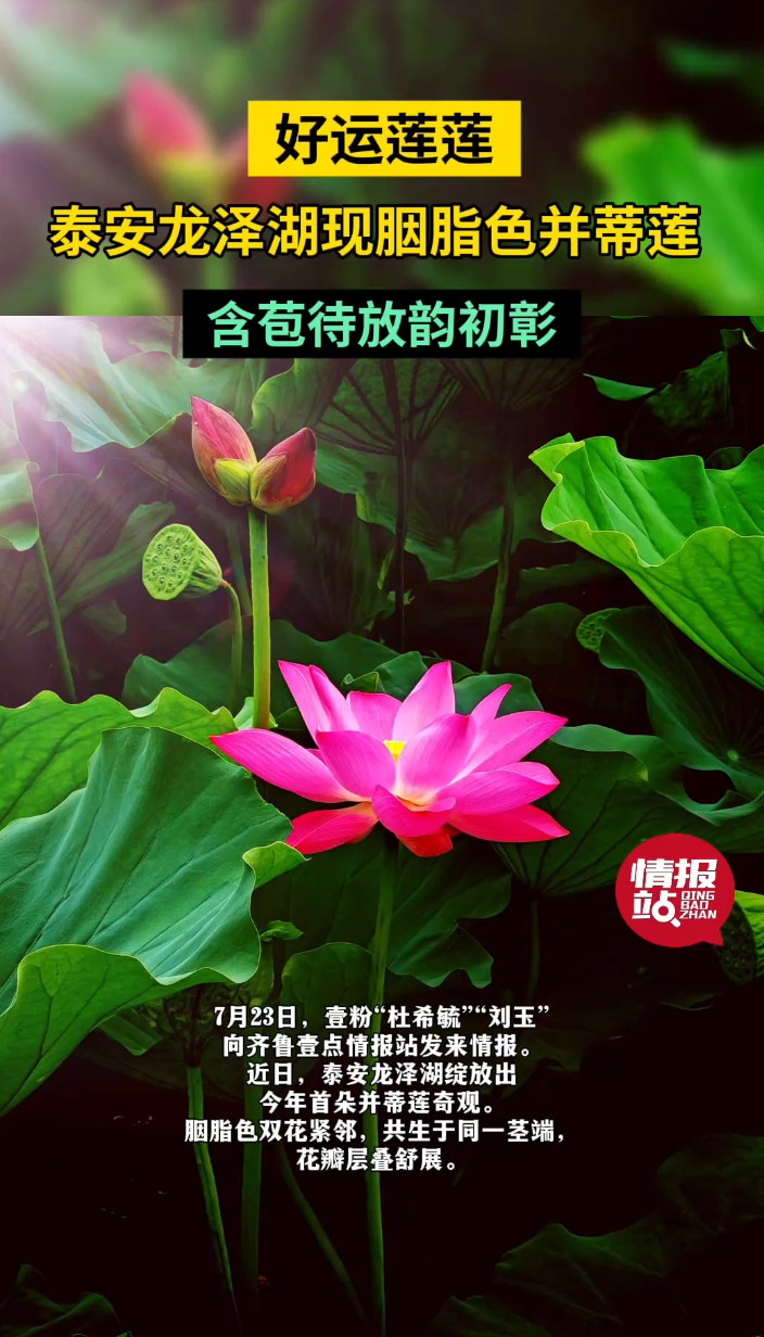 情报站|好运莲莲!泰安龙泽湖现胭脂色并蒂莲,含苞待放韵初彰