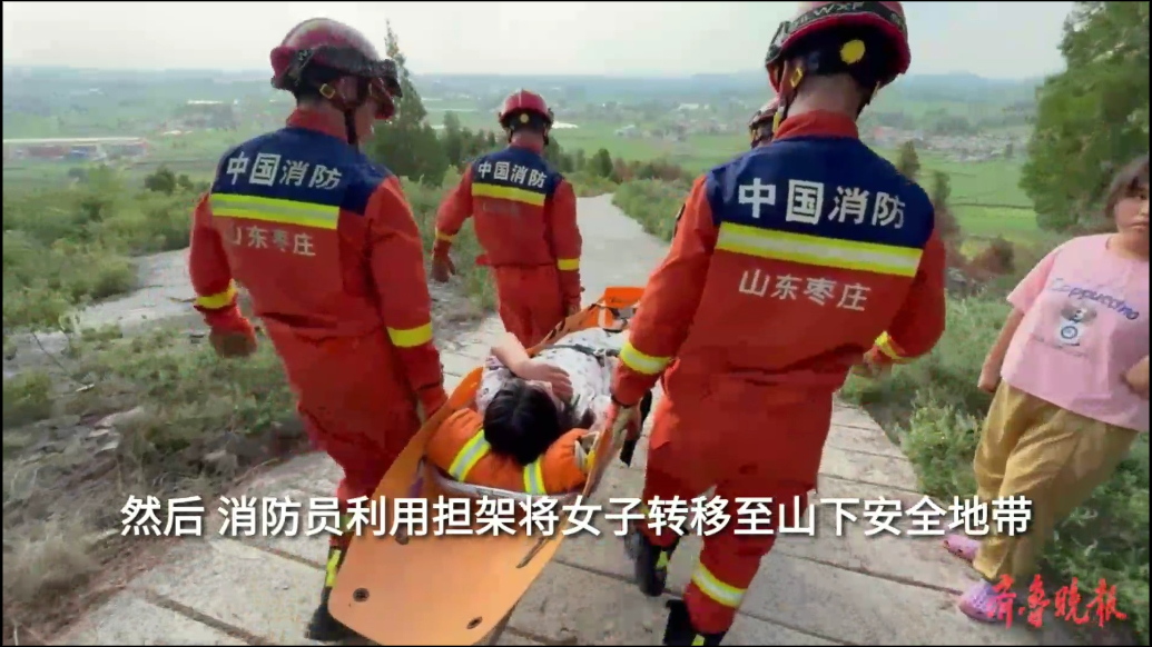 果然视频|女子爬山崴脚被困,消防员用担架将其抬下山
