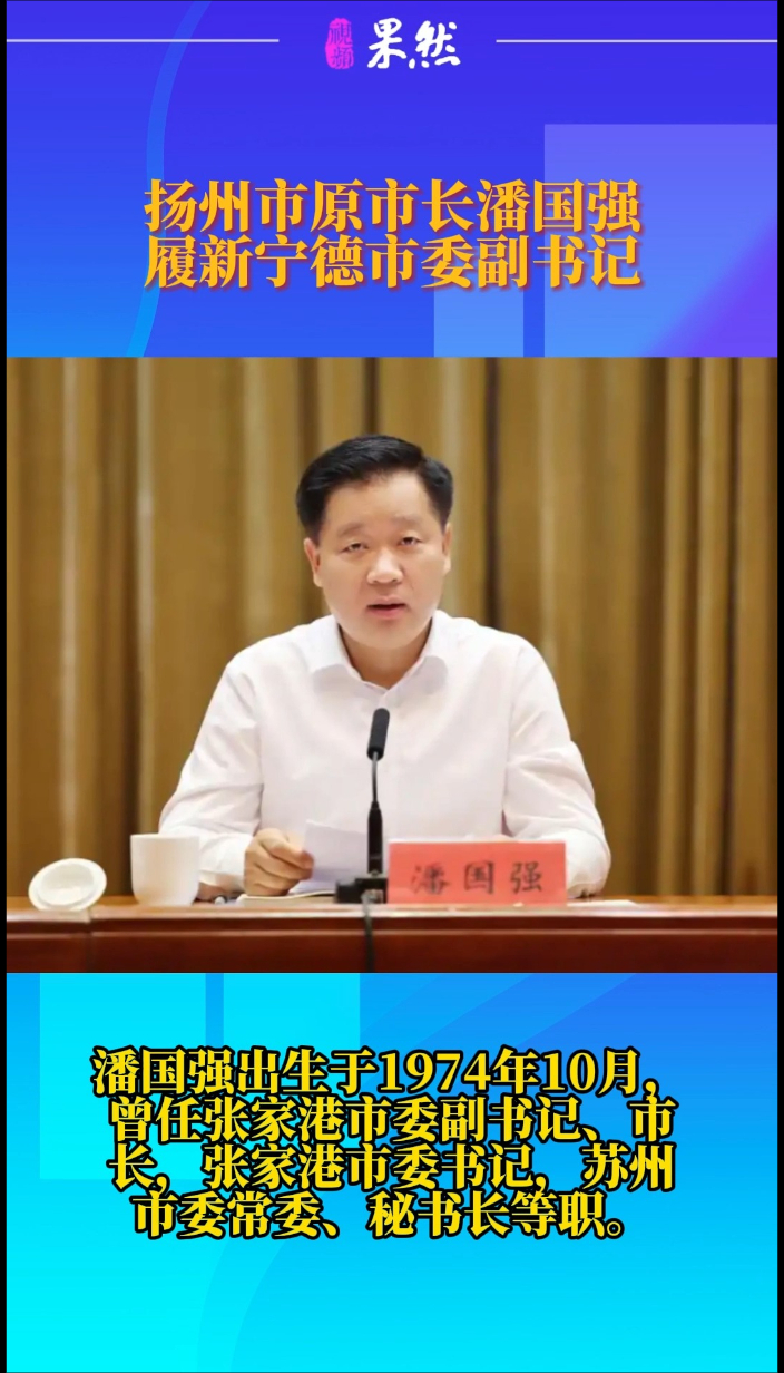 观政视频|扬州市原市长潘国强跨省履新宁德市委副书记