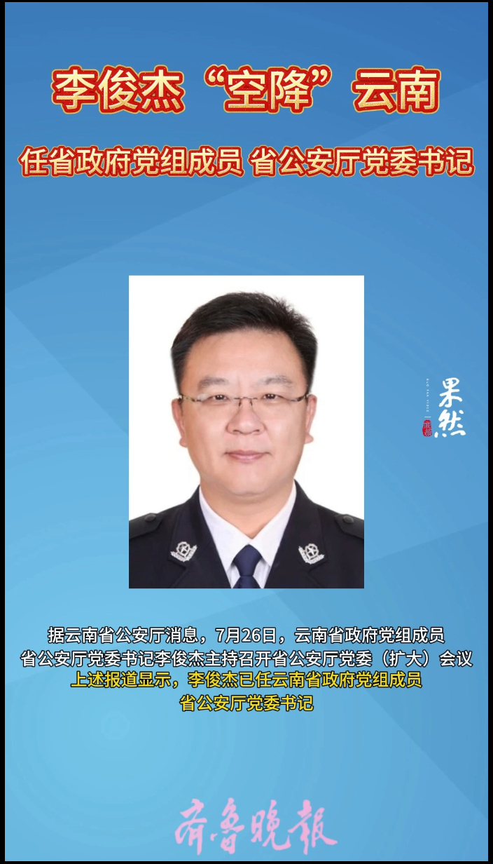 观政视频|李俊杰已任云南省政府党组成员、省公安厅党委书记