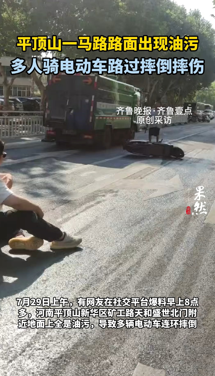 果然视频|平顶山一马路路面出现油污,多人骑电动车路过摔倒摔伤