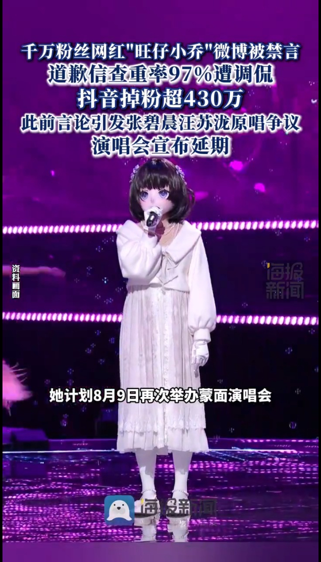 主播说丨千万粉丝网红“旺仔小乔”微博被禁言,道歉信查重率97%遭调侃