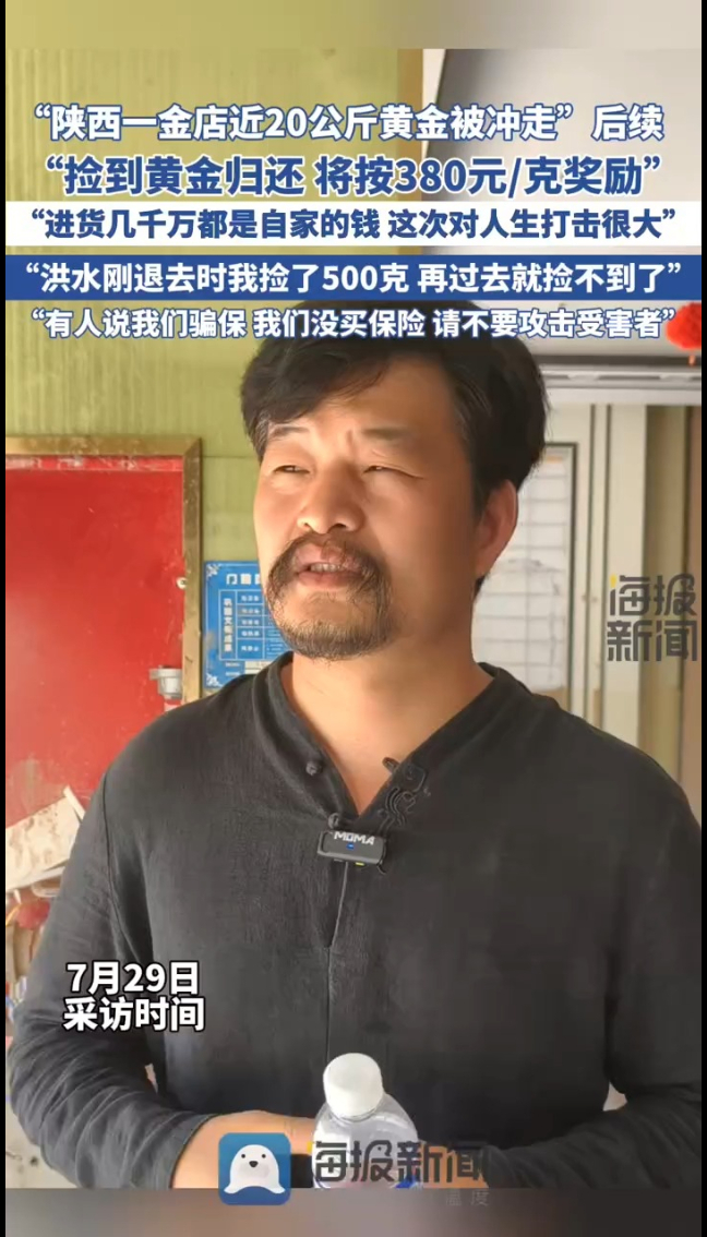陕西一金店近20公斤黄金被冲走 该店股东:这次的受损对人生打击很大