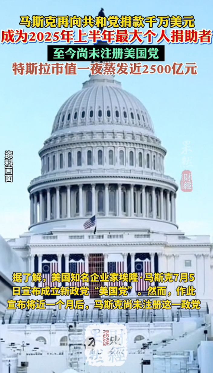 果然财经|马斯克再向共和党捐款千万美元,尚未注册“美国党”