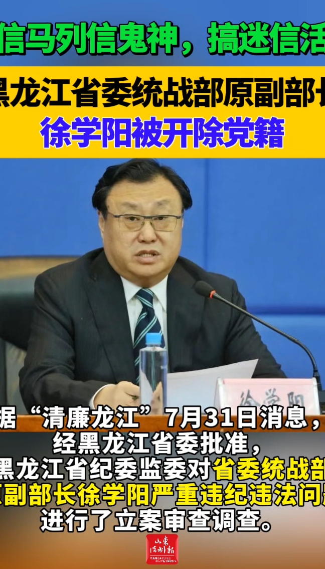 不信马列信鬼神,搞迷信活动 黑龙江省委统战部原副部长徐学阳被开除党籍