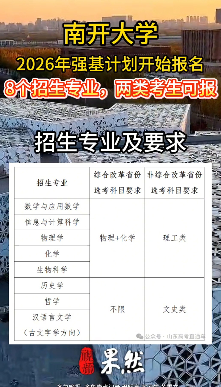 果然视频|南开大学2026强基计划八个专业招生,两类考生可报